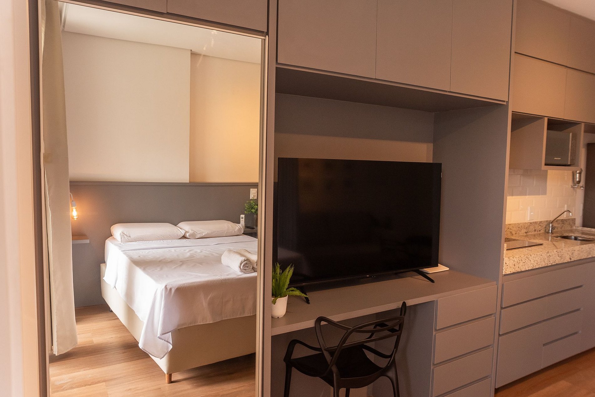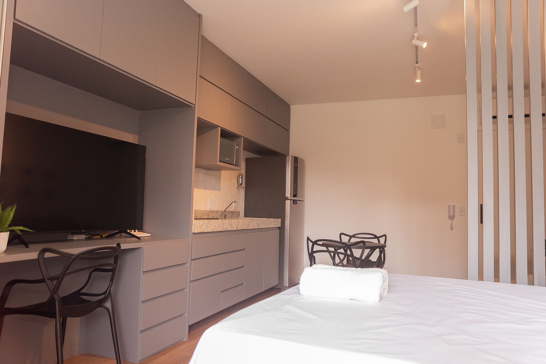 Hospede-se em um espaço inteiro, em um edifício recém-inaugurado na Rua Gomes Barbosa, com localização privilegiada: próximo ao Hotel Alfa, à UFV e ao cemitério. Apesar de o prédio e o estúdio ainda estarem em fase final de acabamento, o ambiente já está pronto para receber você com conforto e praticidade.