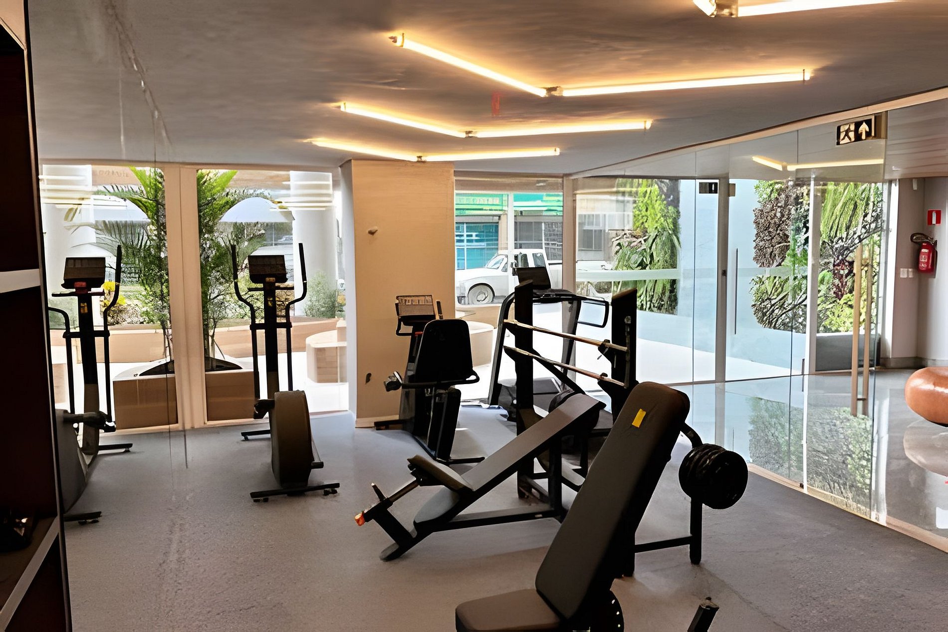 * Academia equipada, ideal para manter a rotina de treinos durante a estadia