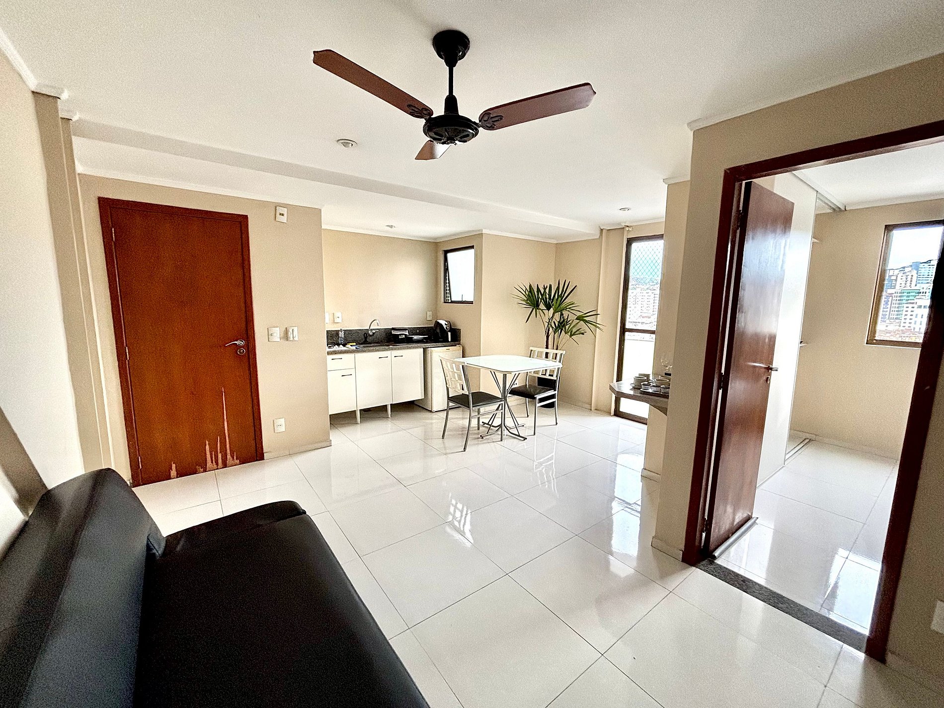 Espaço inteiro, com 1 quarto, sala, cozinha, banheiro e uma agradável varanda e garagem. Localizado no sexto andar, com elevador, está em uma rua comercial com supermercado, restaurante, farmácia e lavanderia. É a escolha ideal para quem vem a Viçosa a trabalho ou para compromissos na UFV.